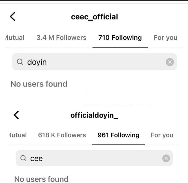 Ex-BBNaija All Stars housemate, Doyin David has reacted to reports that she and her colleague, Cee C unfollowed each other on social media.