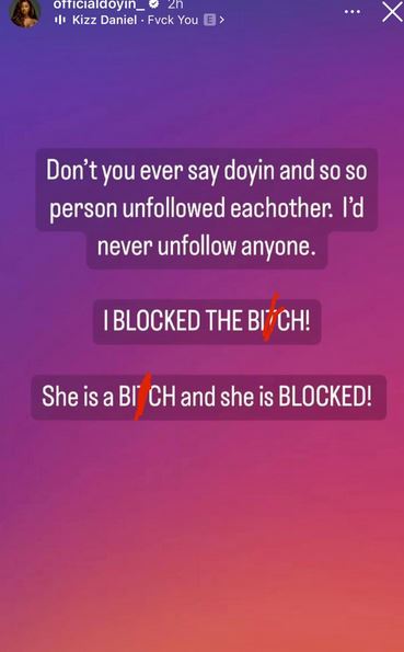 According to Doyin, she did not unfollow CeeC, rather she blocked her because she is a b!tch.