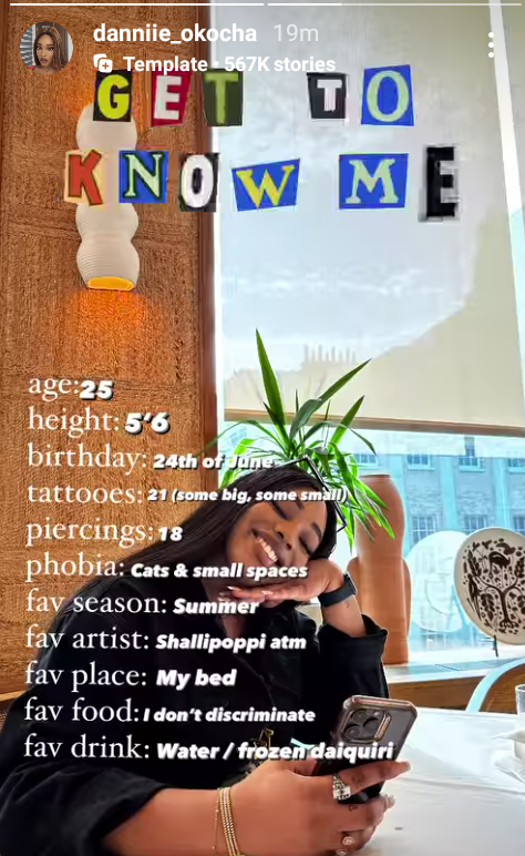 In a post shared on her Instagram Story, where she divulged some random facts about herself, the 25-year-old lawyer disclosed that she has 21 tattoos and 18 piercings.